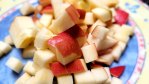 Dice the apple and scatter with the cranvberries evenly over the baking tray