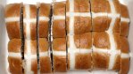 Remove the buns from their pack and slice vertically into 1 cm thick slices.