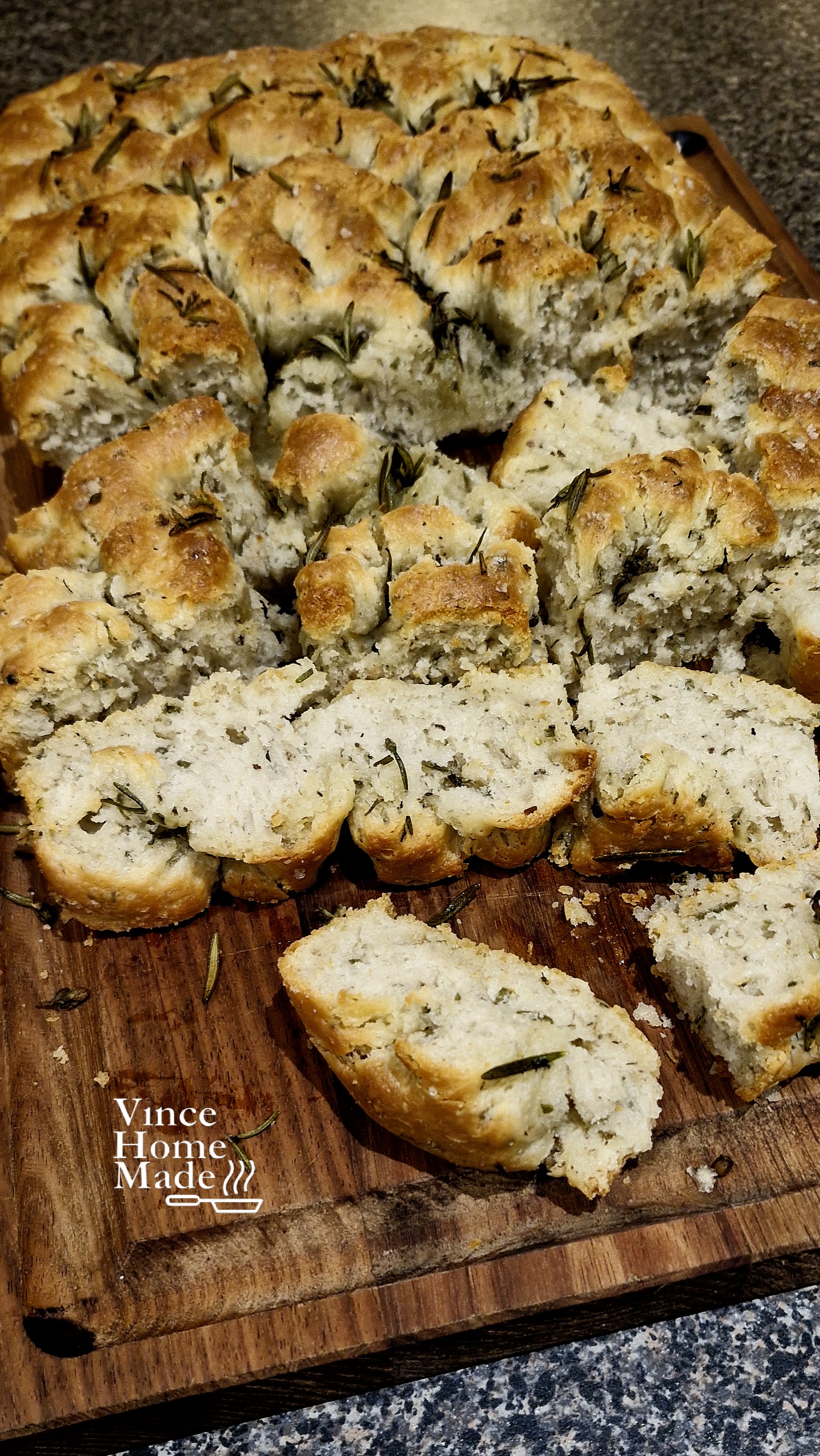 A great tasting and fairly easy bread to make, ideal for sharing. Perfect as a starter with dips, as a side to a warming winter soup, or a summer salad garnish.